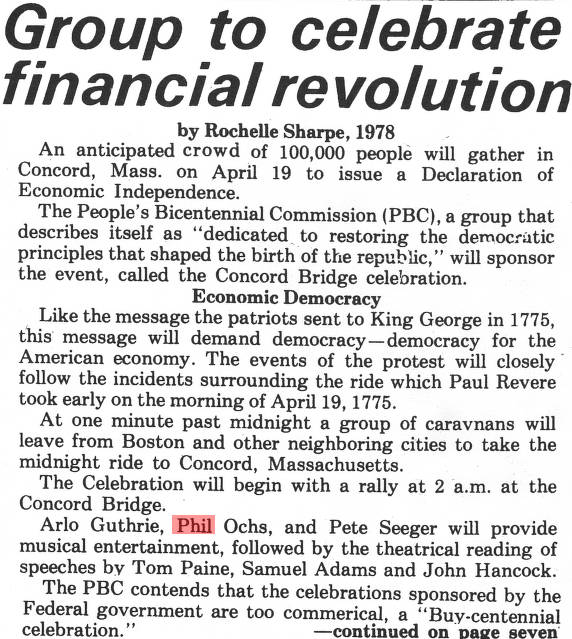 April 19, 1975 – Concord, MA – Peoples Bicentennial Committee rally Yale Daily News no. 123 April 14 1975 Yale Daily News Magazine no. 132 May 1 1975 Share this:Tweet Click to email a link to a friend (Opens in new window) Email Click to print (Opens in new window) Print Like Loading... Leave a comment Cancel reply Δ