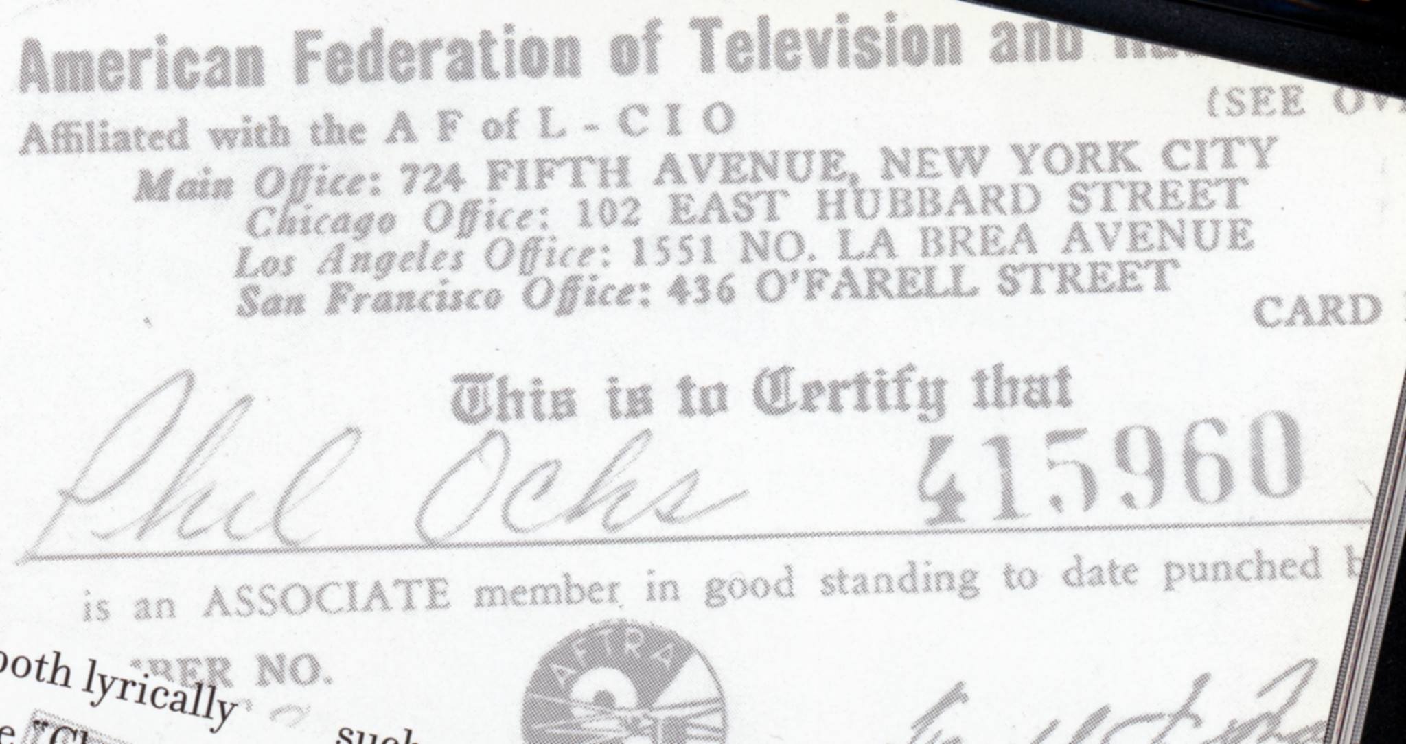 Program dedicated to political songwriter and performer Phil Ochs (1940-1976) that includes a May 1973 Studs Terkel interview with Ochs and close friend Bob Gibson, and Ed Pearl interviewing Ochs’ brother and manager Michael. Studs Terkel interview includes Ochs and Gibson singing songs from and discussing Ochs’ life and musical career. Michael Ochs talks to Ed Pearl about Phil and plays songs from Chords of Fame, a best-of compilation Michael produced months after Phil’s death. Broadcast on KPFK in 1981.