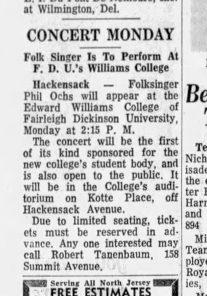 January 11, 1965- Hackensack, NJ – Edward Williams College Share this:Tweet Click to email a link to a friend (Opens in new window) Email Click to print (Opens in new window) Print Like Loading...