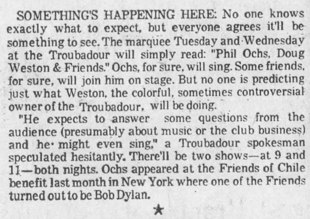 June 11-12, 1974 – Los Angeles, CA – Troubadour