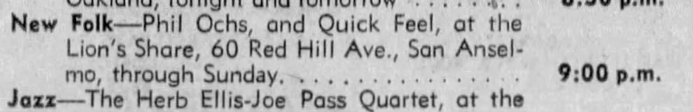 March 30, 1973 – San Anselmo, CA – Lion’s Share Share this:Tweet Click to email a link to a friend (Opens in new window) Email Click to print (Opens in new window) Print Like Loading...