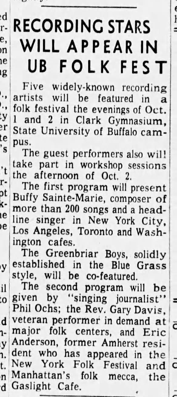 October 2, 1965 – Buffalo, NY – Clark Gym, University of Buffalo Folk Festival