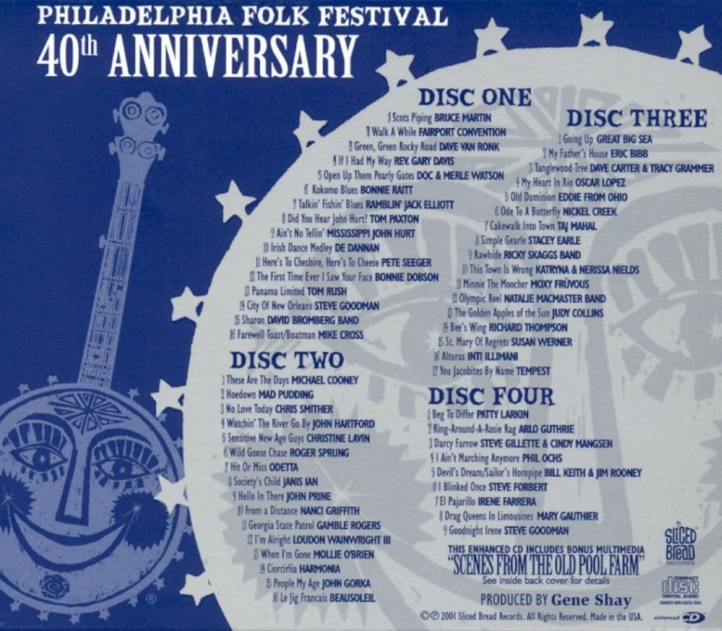 Philadelphia Folk Festival 40th Anniversary Share this:Tweet Click to email a link to a friend (Opens in new window) Email Click to print (Opens in new window) Print Like Loading...