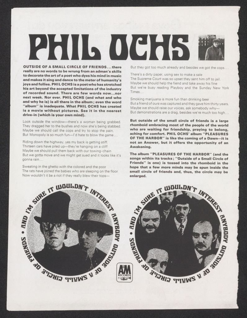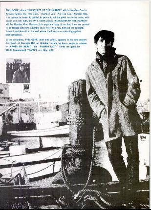 Pleasures of the Harbor was Phil’s third studio album. It was released in 1967 and was the first of his albums to be released on A&M. It was hist first album to start straying from the basic folk formula of a guitar and a voice.